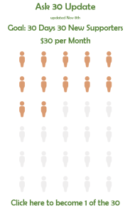 Over the 30 days of November, add 30 new supporters @ $30 per month.