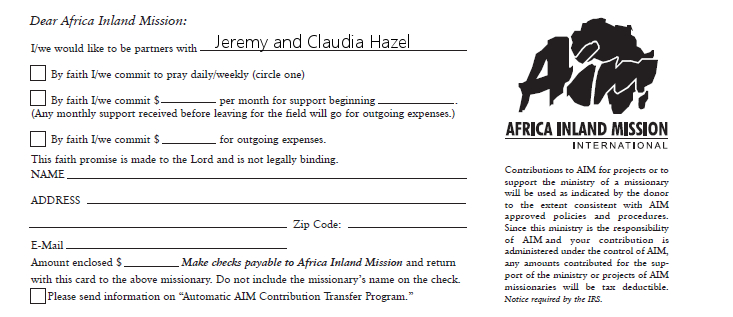 In case you would like to send a check with your donation you can simply (Just click on the picture below and hit print ctrl-p) and fill out the following slip below and mail it AIM at